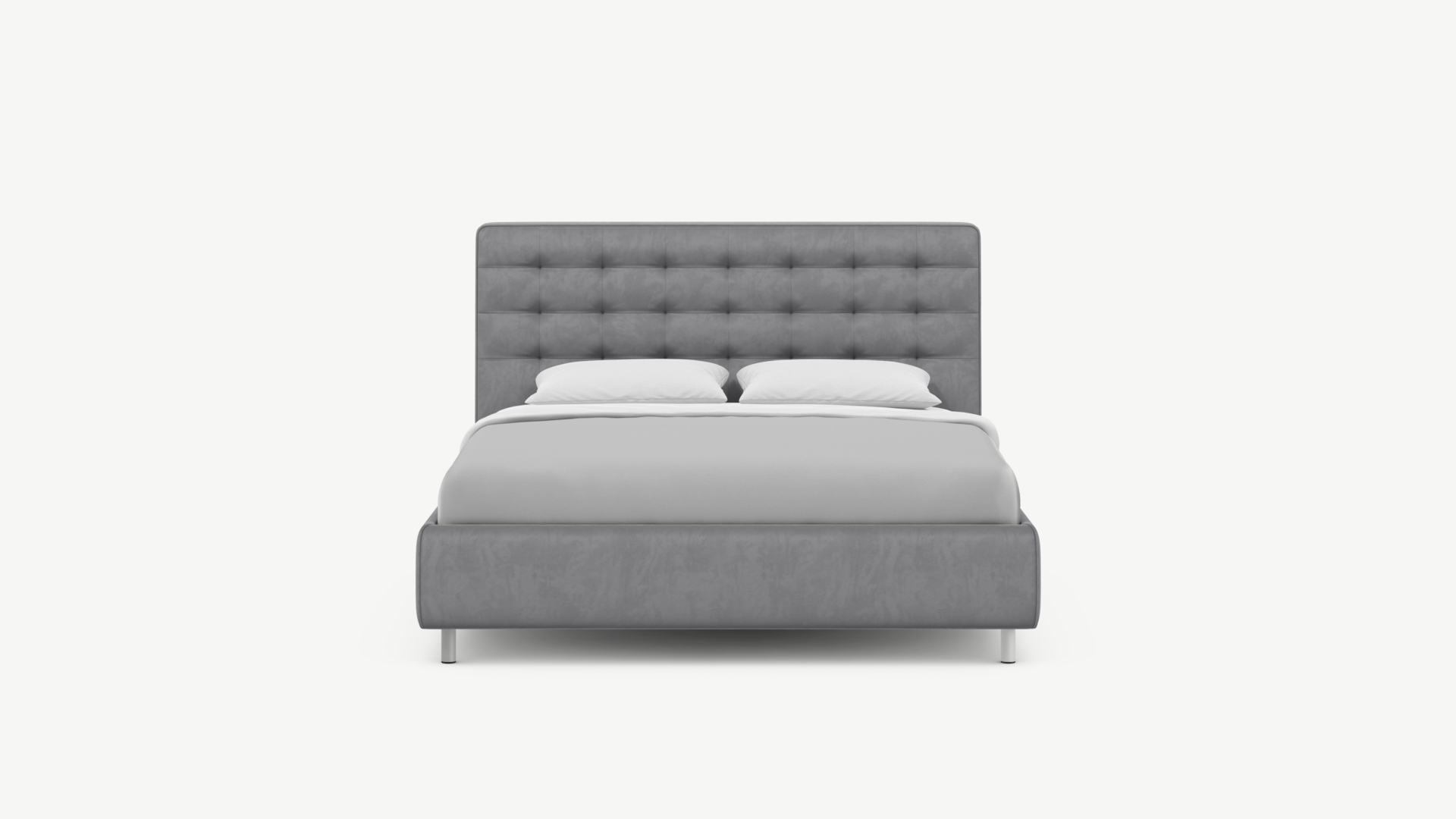 Оформите образ кровати, выбирая обивочный материал, который подчеркнет звучание Вашей спальни и отразит Ваш вкус. Обратите внимание на однотонный гладкий велюр, который усиливает объемную фактуру стежки.