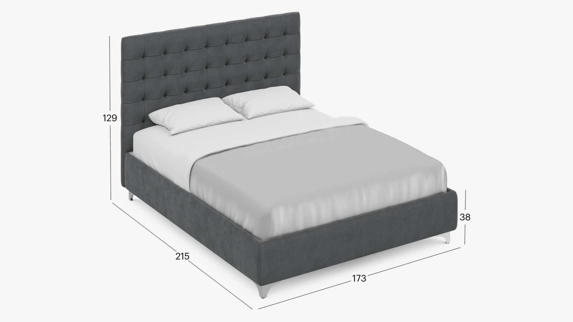 Дизайн MOON 1155 полон харизмы и шарма. Роскошное изголовье с каретной стяжкой впечатляет эффектным рельефом. Кровать воплощает в интерьере идею об аристократической элегантности: просыпайтесь и засыпайте, подобно монаршим особам!