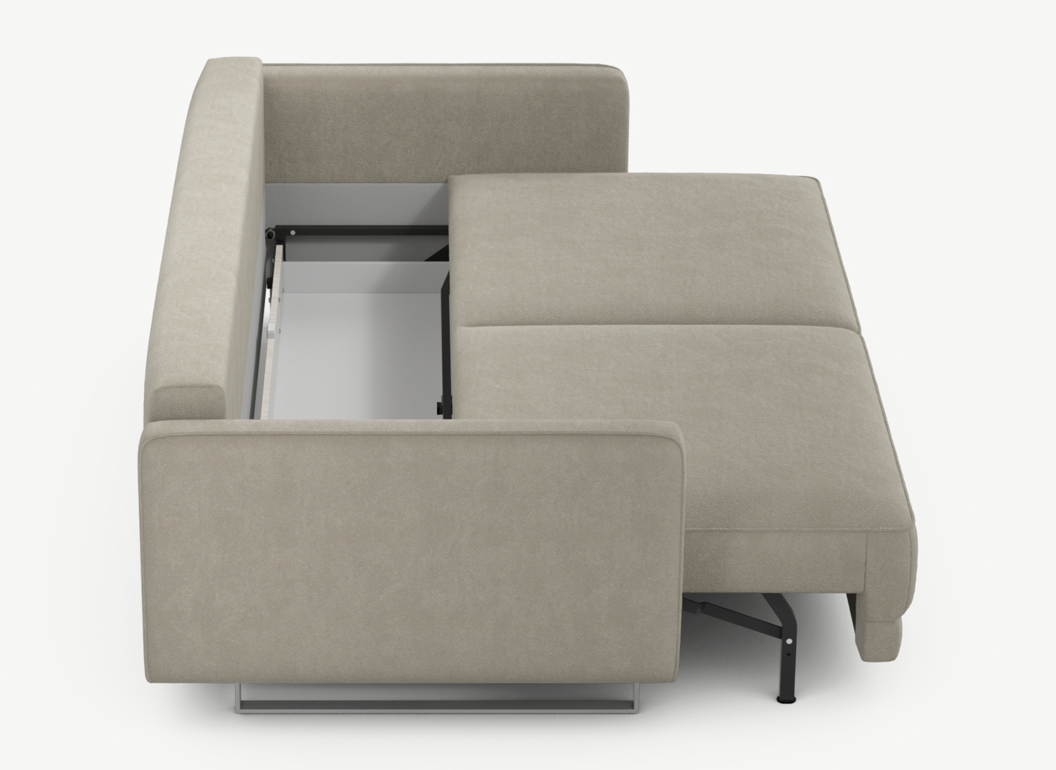 Механизм трансформации «Пантограф» подходит для ежедневного использования. Позволяет легко раскладывать и складывать диван, обеспечивая минимальный контакт дополнительных опор с напольным покрытием. Диван стоит на прямоугольных опорах, в то время как дополнительные остаются скрытыми, появляясь плавно и бесшумно в единственно нужный момент — при трансформации дивана в кровать.