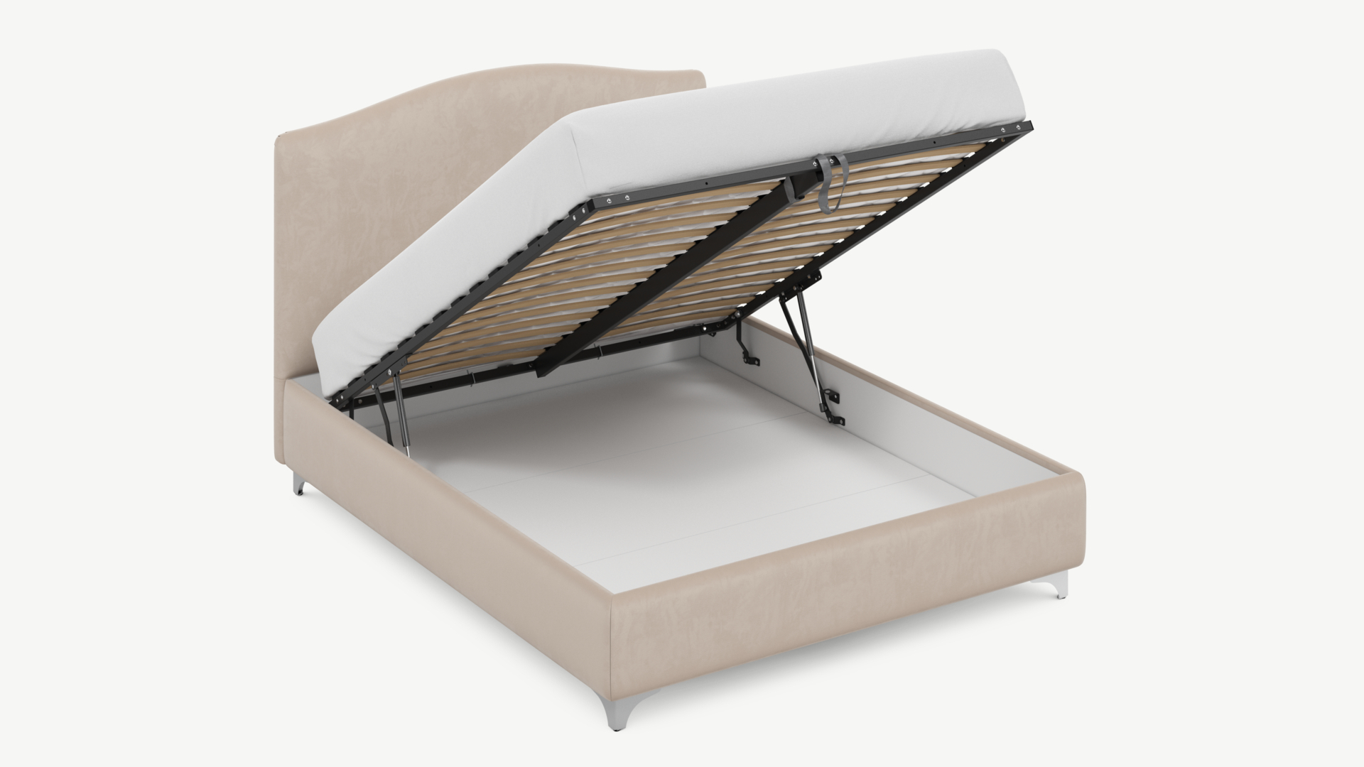 • Скрытая под основанием вместительная емкость без внутренних перегородок позволяет использовать всю площадь подкроватного пространства для хранения вещей.