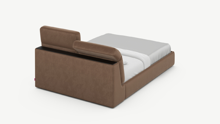 Изголовье подчеркивает эстетику MOON 1107, а также дарит дополнительный комфорт и уют спальному месту. Обратная сторона изголовья выполнена в мебельной ткани и позволяет ставить кровать в центре комнаты для зонирования пространства.
