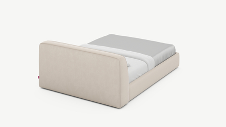 Обратная сторона изголовья выполнена в мебельной ткани и позволяет ставить кровать в центре комнаты для зонирования пространства.
