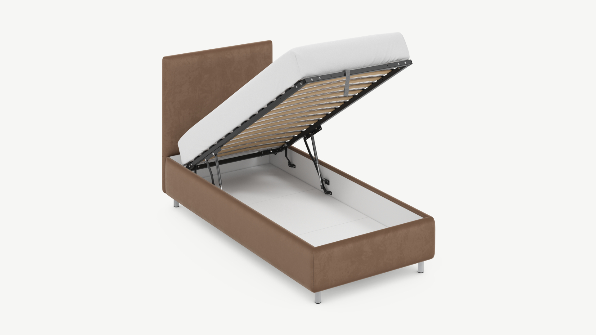 • Скрытая под основанием вместительная емкость без внутренних перегородок позволяет использовать всю площадь подкроватного пространства для хранения вещей.